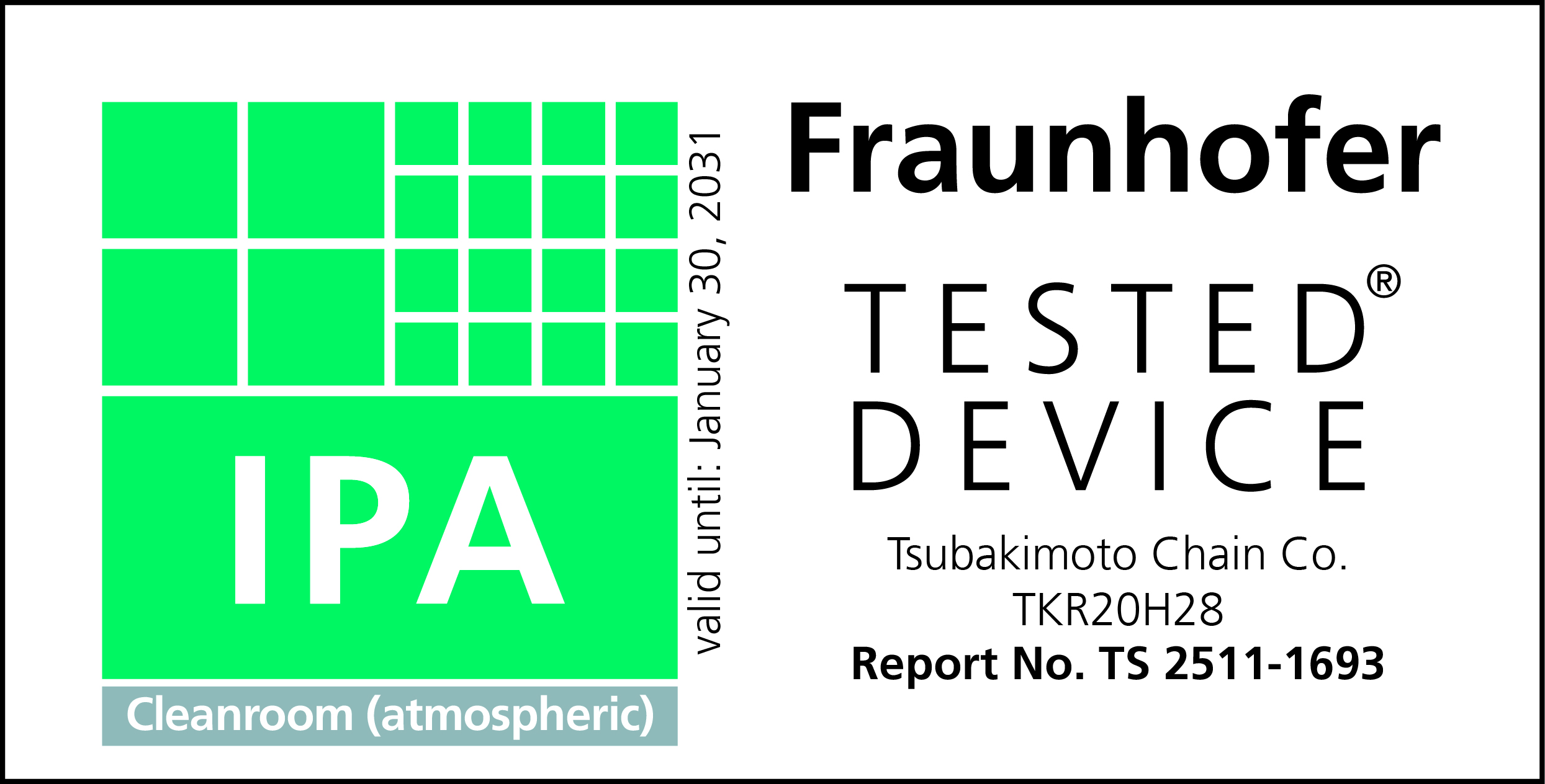 (根據德國弗勞恩霍夫工業工程與自動化研究所 (IPA) 依據 ISO 14644-1《空氣潔淨度等級》進行的測試,TKR 型電纜保護鏈條(產品 TKR20H28 的證書)達到了 ISO 1 級。)