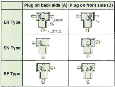 | 軸配置、旋轉方向LR | 軸配置、旋轉方向SN | 軸配置/方向SF | |||||||||||||||