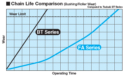 用於輸送水泥等物料的輸送機傳統上採用BT規格,透過改進材料和熱處理過程來提高銷軸、套筒和滾輪的耐磨性。然而,在輸送粉煤灰(水泥原料之一)等高磨蝕性物料時,需要更高的耐磨性。因此,我們在2000年6月推出了粉煤灰輸送鏈(FA規格)。