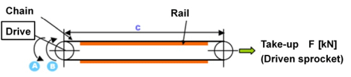 • 確保施加的張力加上張力力後,不超過鏈條的最大容許張力,或低於適當的安全係數。
