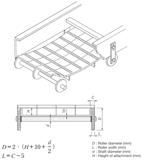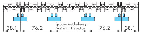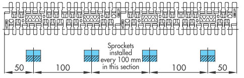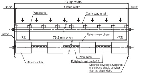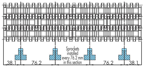 ※對於寬鏈,滾子應以765mm的間隔安裝。