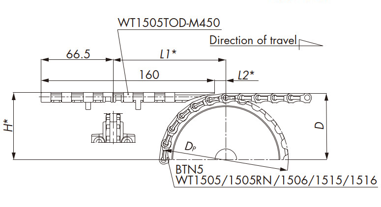 我們建議您使用鏈條(TOD型、GTO型),其中鏈條和傳輸部分是集成的。佈局等請參照以下內容。