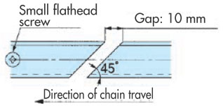 導向鏈的導軌間隙請參考下表。使用多列時,鏈條之間應留出約 1 mm的間隙。