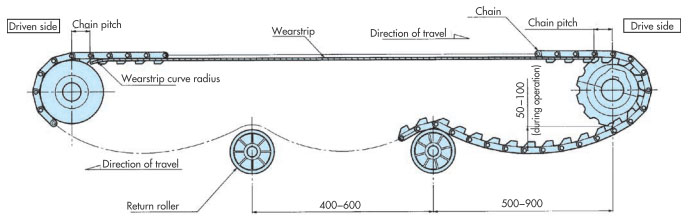 Q10 頂板鏈條和塑膠塊狀鏈條的回程側佈局