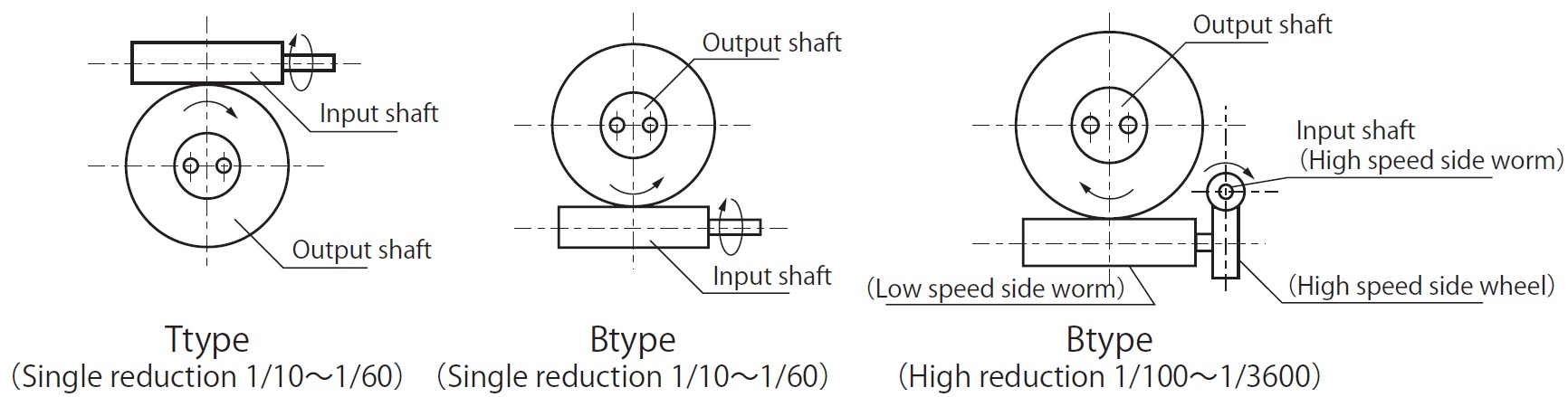 本公司的標準蝸輪齒輪均為右扭轉規格,輸入軸與輸出軸的旋轉關係如下所示。 另外,可以兩次旋轉(CW, CCW)使用。 返回到問題 |