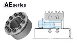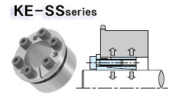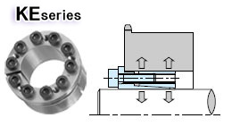 設計上無法取下輪轂的厚度時,或連接中空軸時,從輪轂外側連接的外緊型。