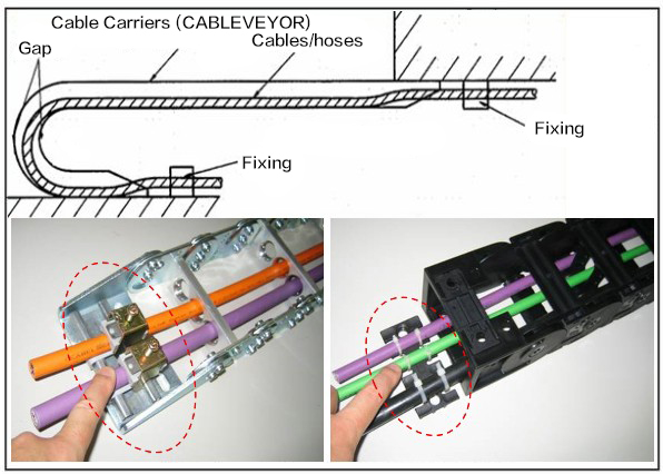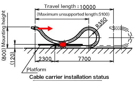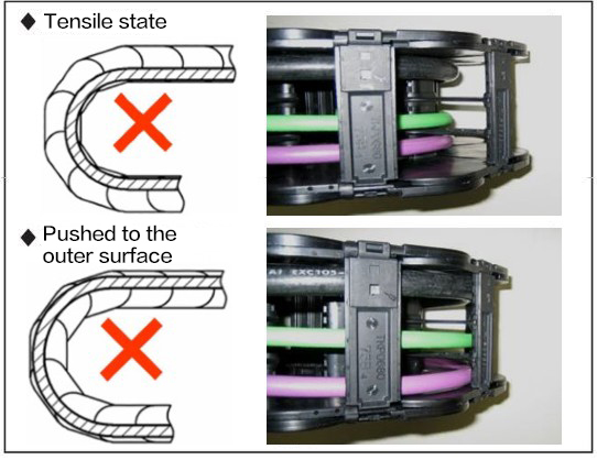 | 原因3 | 施加載荷的原因是電纜保護鏈條的彎曲半徑半徑小於電纜/軟管的允許彎曲彎曲半徑。 | 措施 | 使電纜保護鏈條的彎曲半徑大於電纜/軟管的允許彎曲半徑。 |